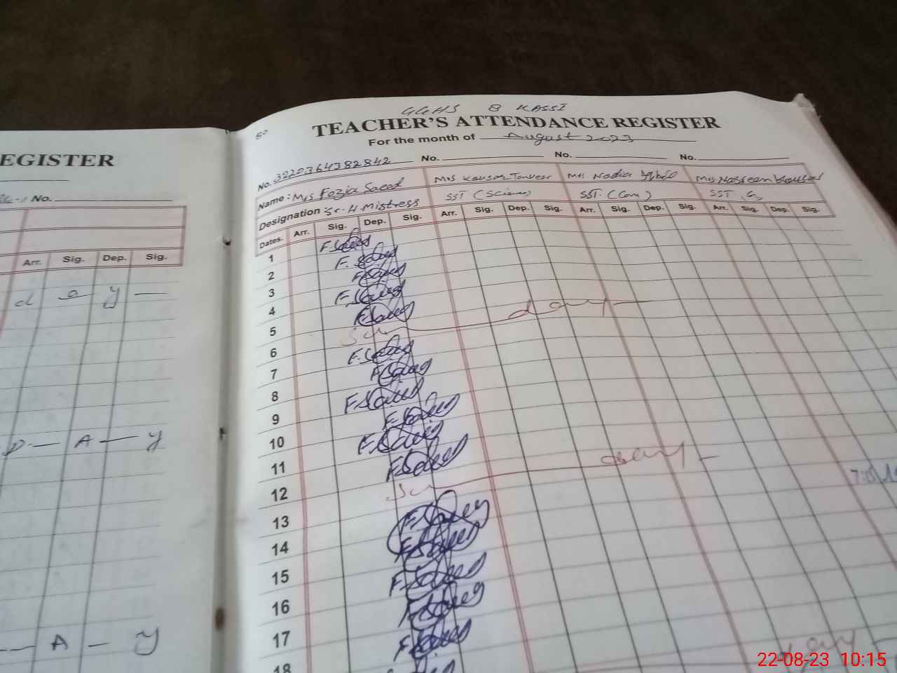 | Remarks (Use Separate Page if Required): EST FAIZA JAMEEL EST SUMAIRA PERVIN SST TAHIRA MUBEEN TRANSFERRED IN THIS SCHOOL BUT NOT IN TEACHER LIST | |||||