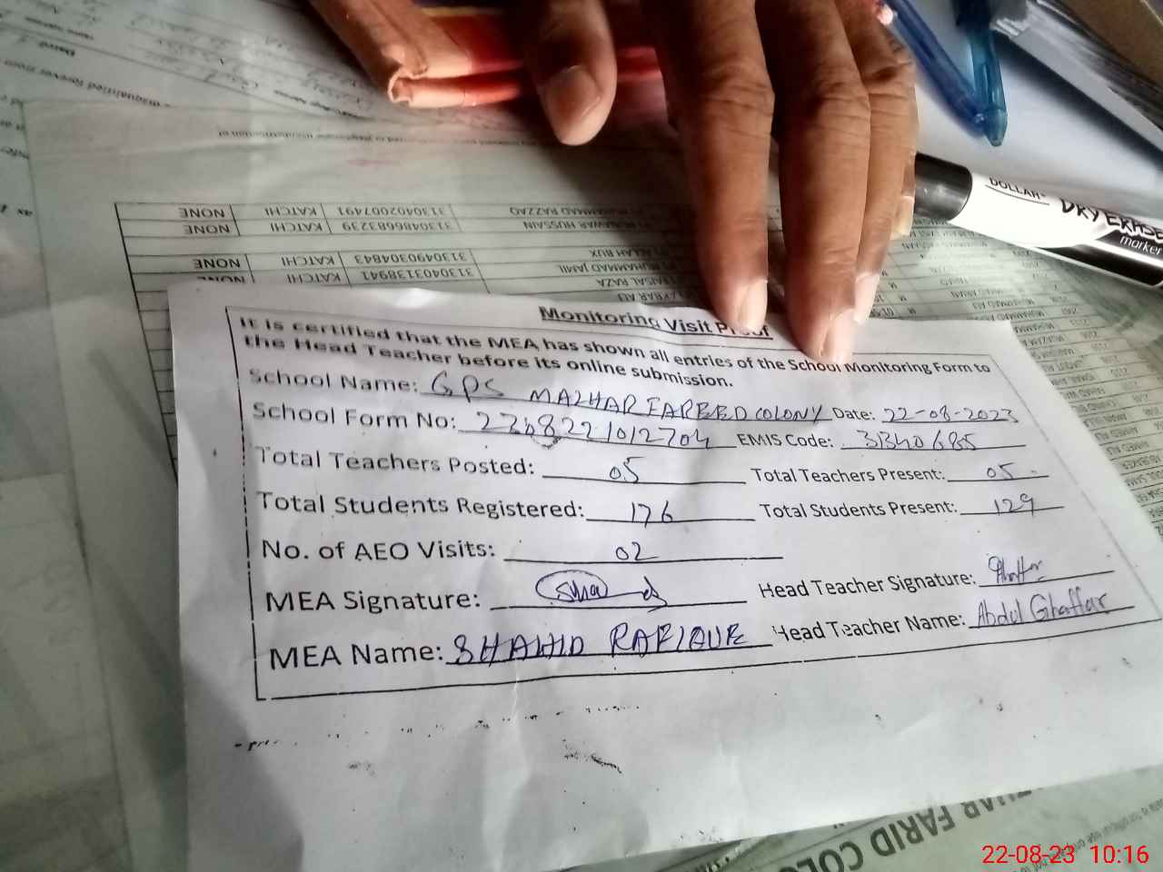 | EMIS Code: 31340685 | Name of School: GPS MAZHAR FARID COLONY | |||
