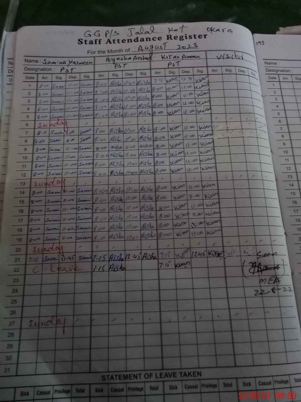 | 35**** | Sa**** Ya**** | PST | Regular | 0 | 0 | 0 | 0 | 0 | 0 | 0 | 0 | 0 | Casual |