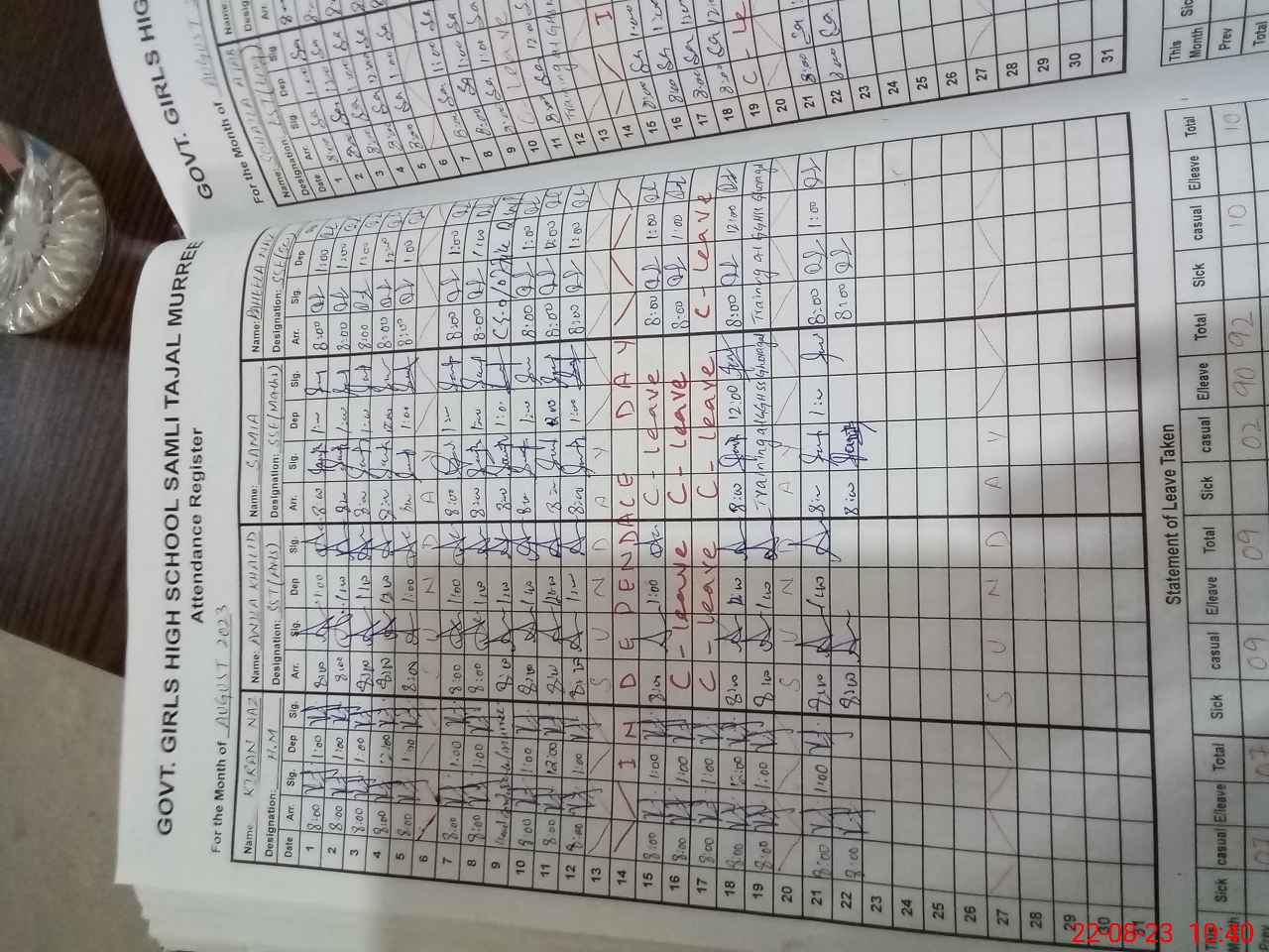 | CNIC | Full Name | Designation | R/C | Absence During Last Calender Month |