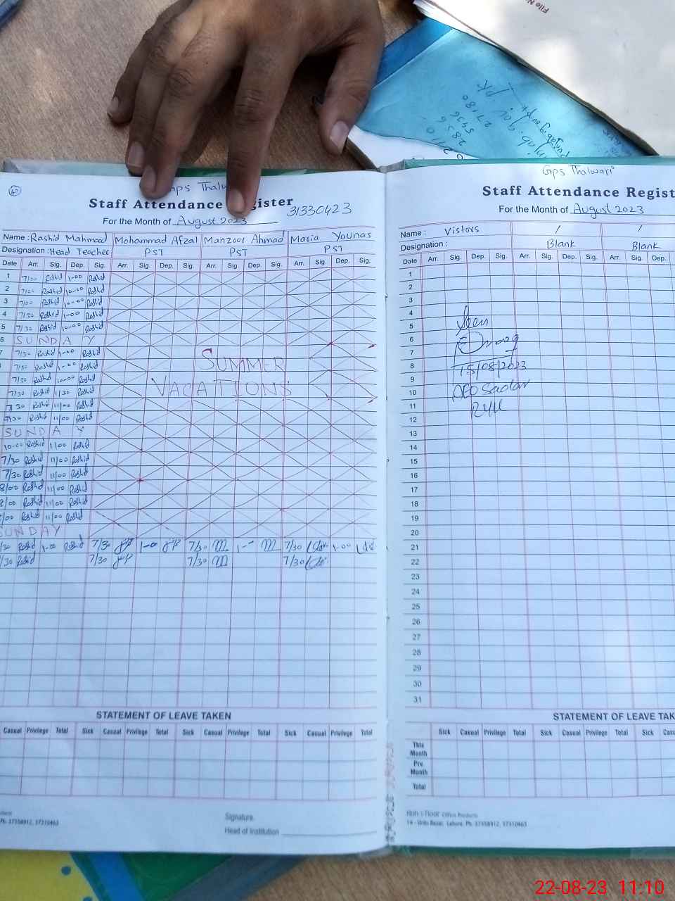 | Name: RA**** ME**** Designation: (School Headmaster's/Headmistress's) PST Phone/Cell Number: 03**** |