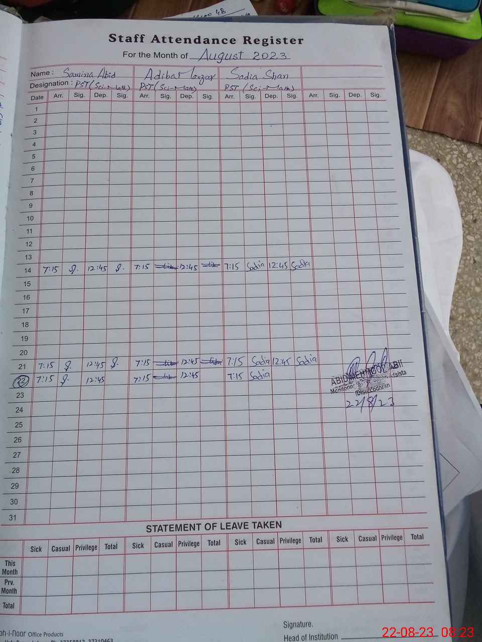 | Name: Sa**** Aa**** Designation: (School Headmaster's/Headmistress's) ESt Phone/Cell Number: 03**** |