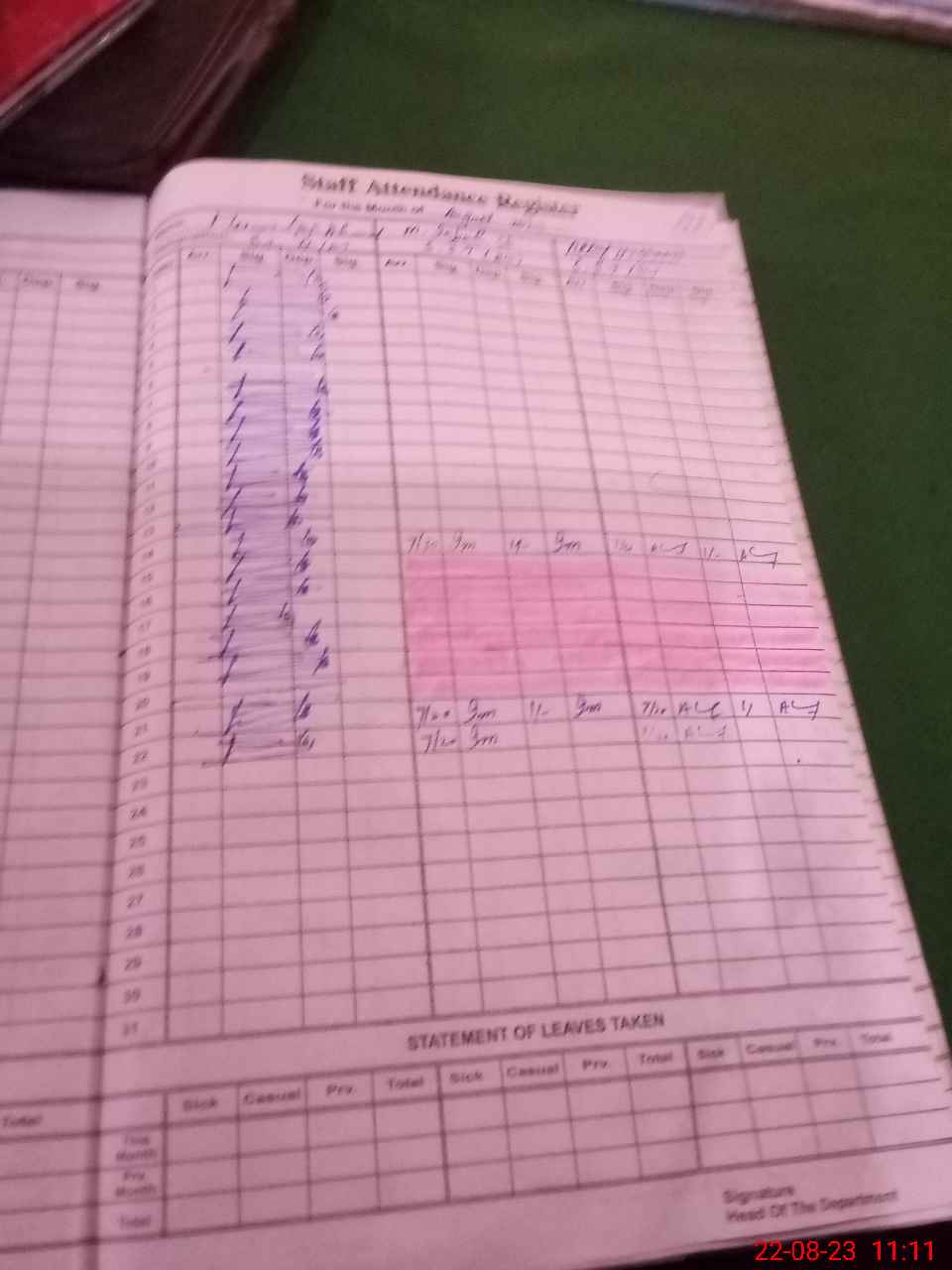 | CNIC | Full Name | Designation | R/C | Absence During Last Calender Month |