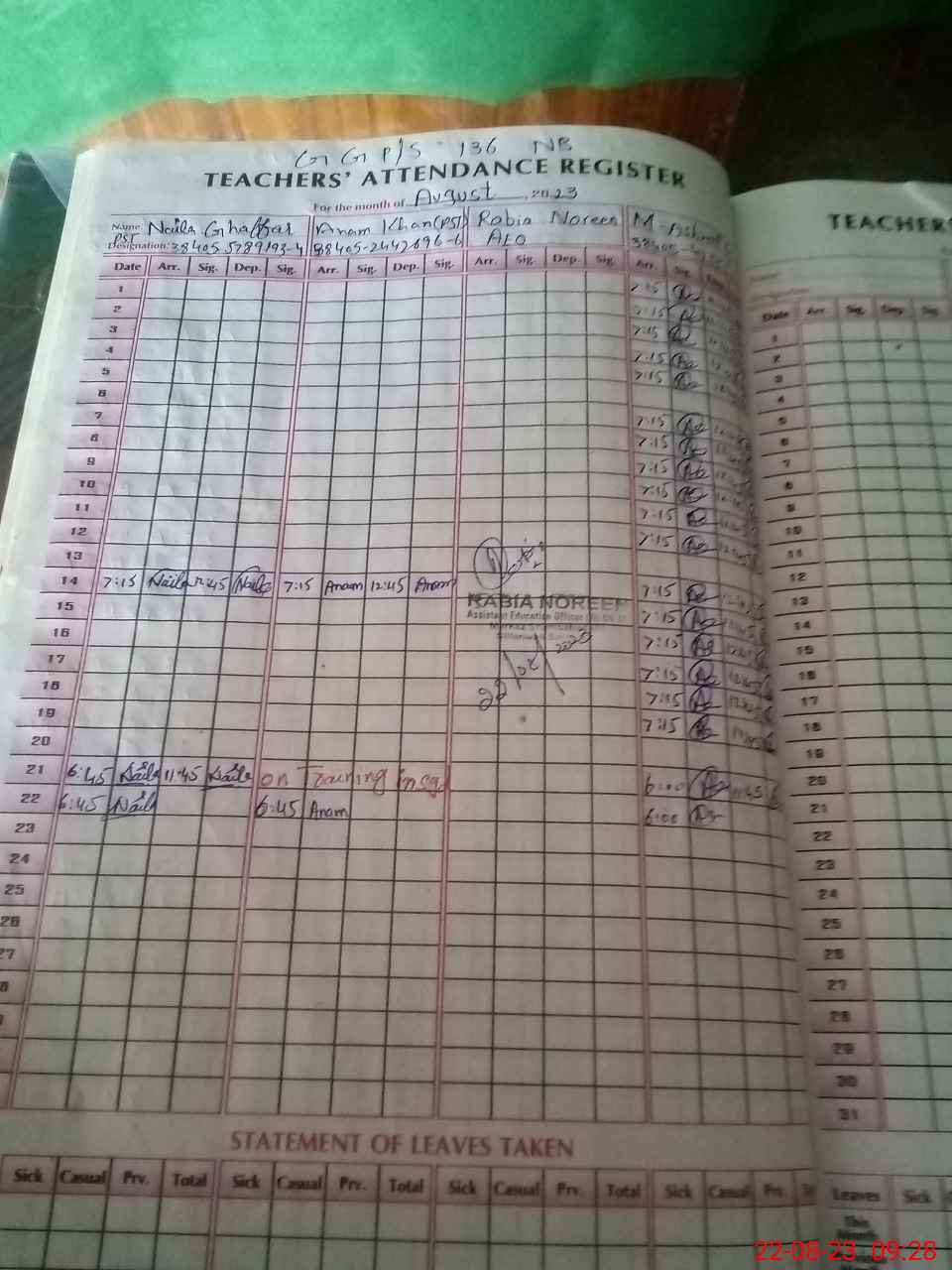 | Name: NA**** GH**** Designation: (School Headmaster's/Headmistress's) PST (SCI,MATH) Phone/Cell Number: 03**** |