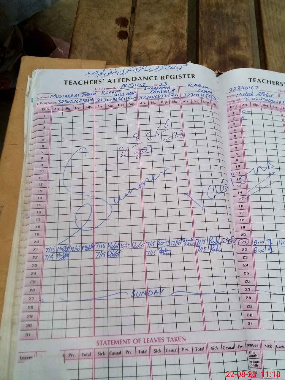 | CNIC | Full Name | Designation | R/C | Absence During Last Calender Month |