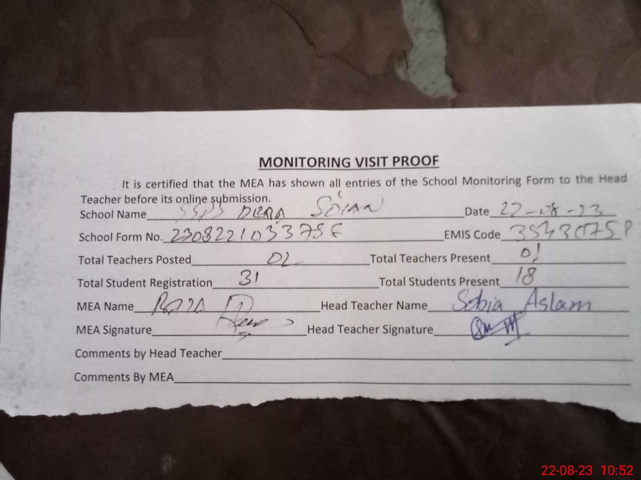 | EMIS Code: 35430759 | Name of School: GGPS DERA SOIAO | |||