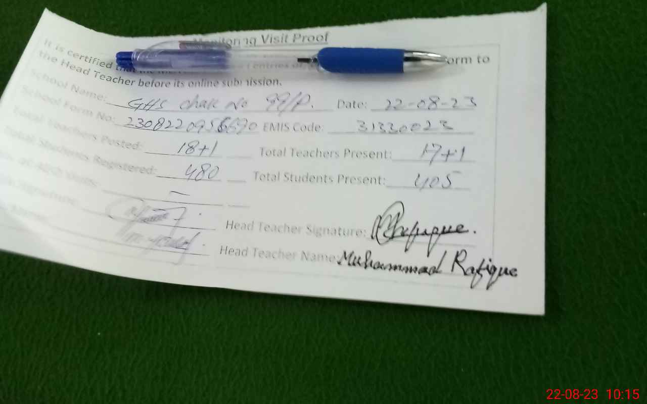 | EMIS Code: 31330023 | Name of School: GHS CHAK NO. 99/P | |||