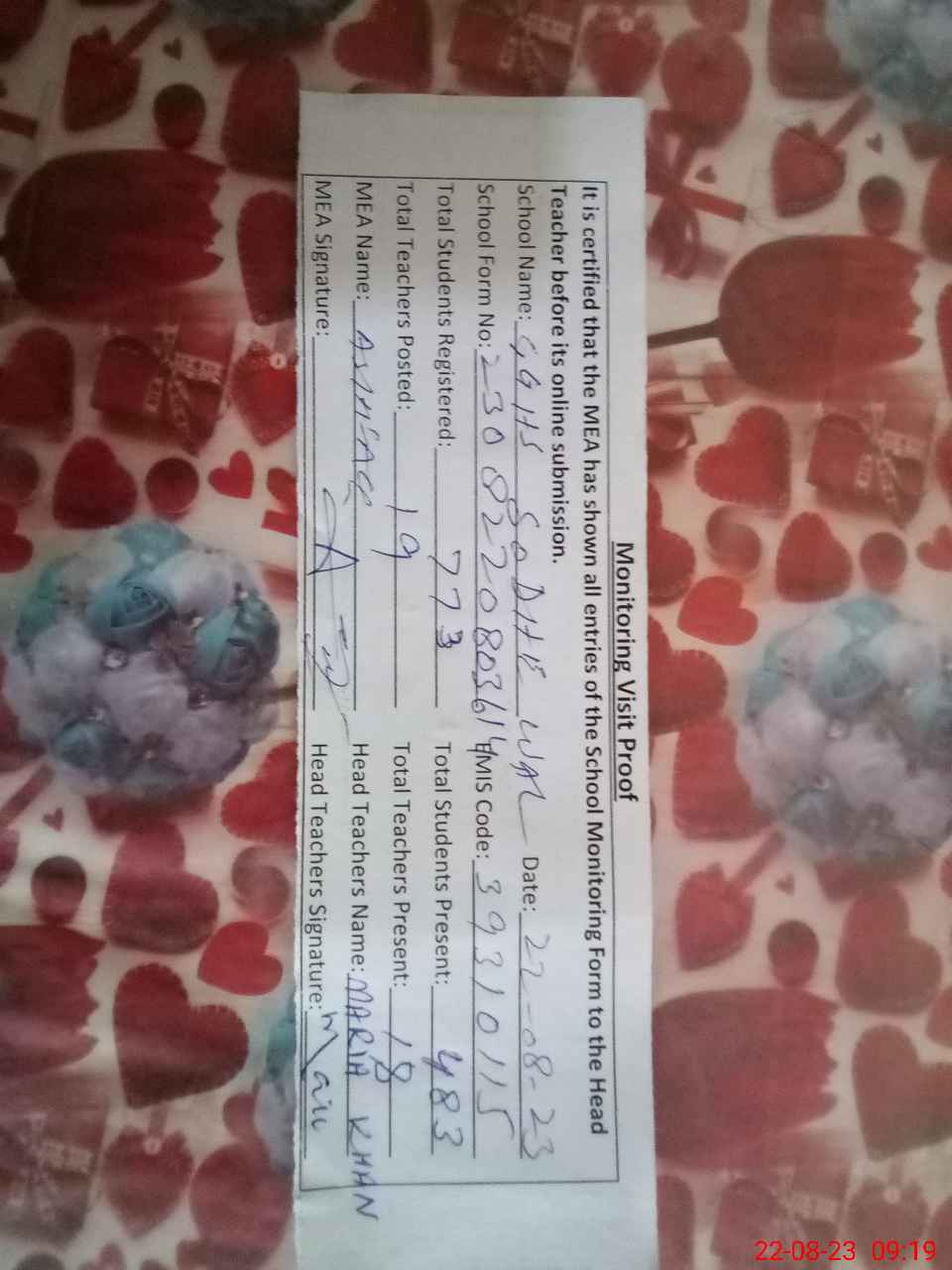 | Certified that this School was Inspected by the Undersigned MEA/DMO Today and the Information Stated Above is as Per Record. | |||||