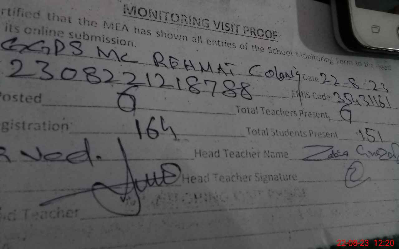 | Attendance Register | Head Teacher | MEA with School | Visit Proof |