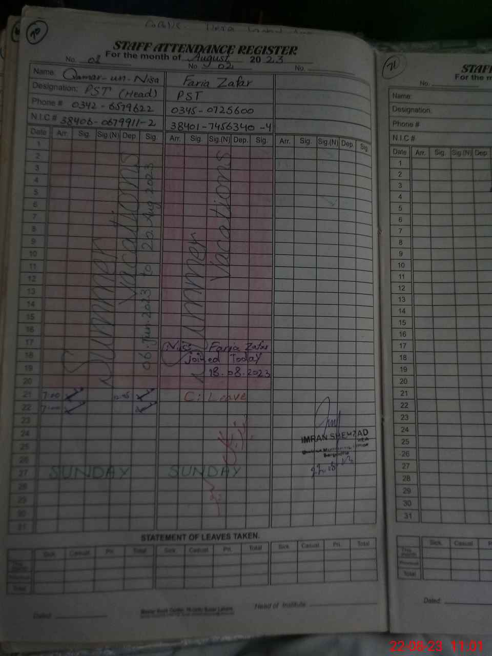 | Name: Qa**** UnNi**** Designation: (School Headmaster's/Headmistress's) PST Phone/Cell Number: 03**** |