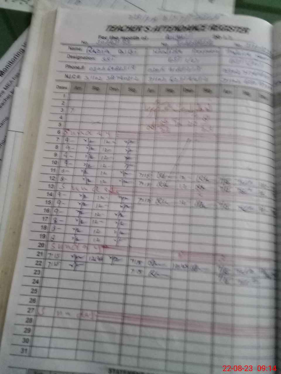 | Name: RA**** BI**** Designation: (School Headmaster's/Headmistress's) SST Phone/Cell Number: 03**** |