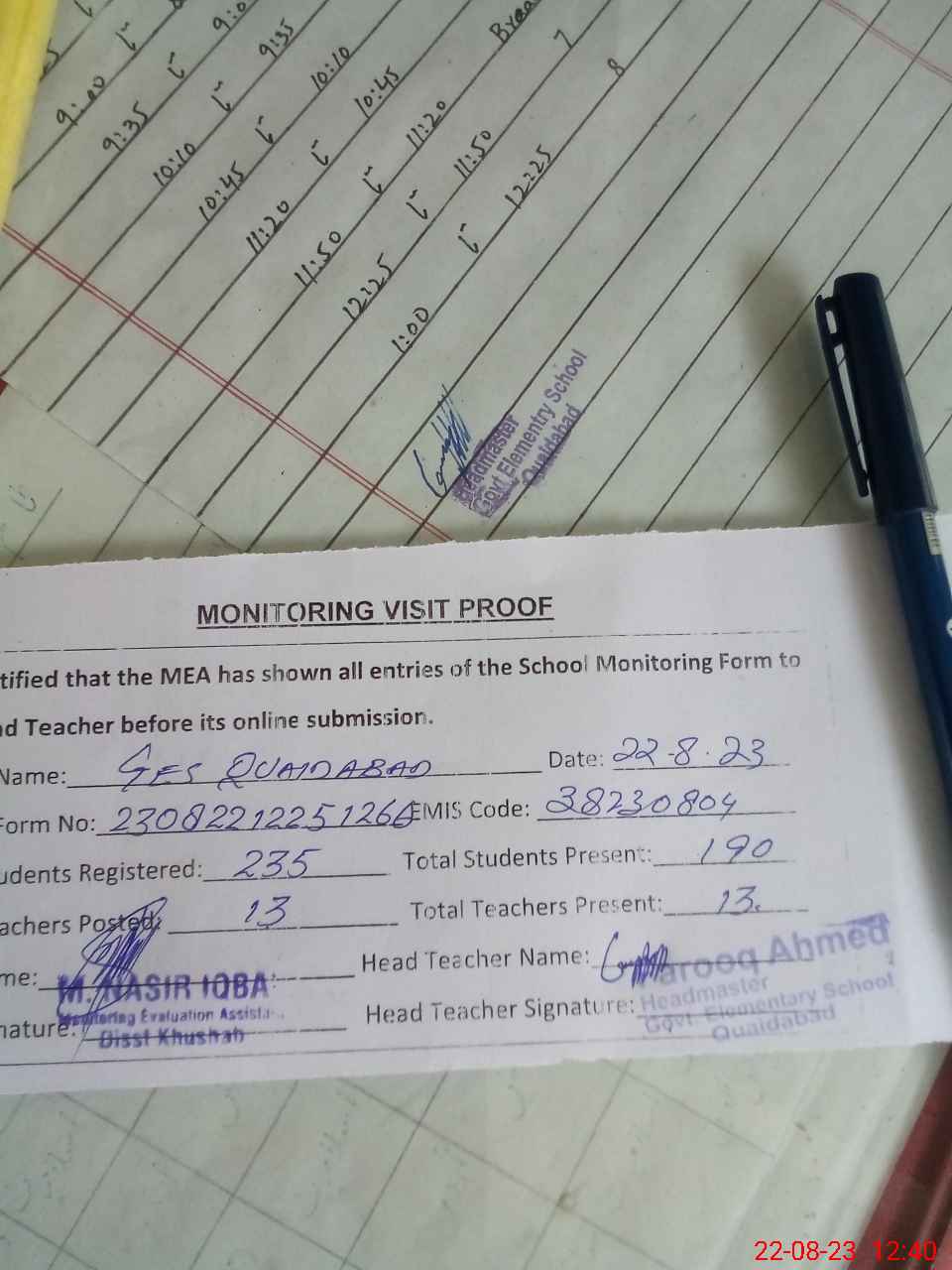 | EMIS Code: 38230804 | Name of School: GES QUAIDABAD | |||