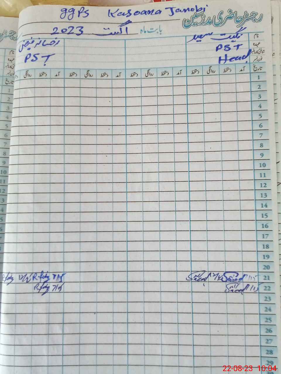 | Name: NI**** SA**** Designation: (School Headmaster's/Headmistress's) PST Phone/Cell Number: 03**** |