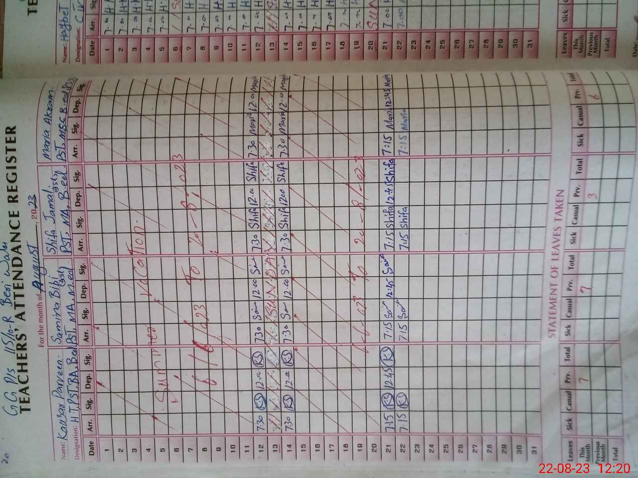 | CNIC | Full Name | Designation | R/C | Absence During Last Calender Month |