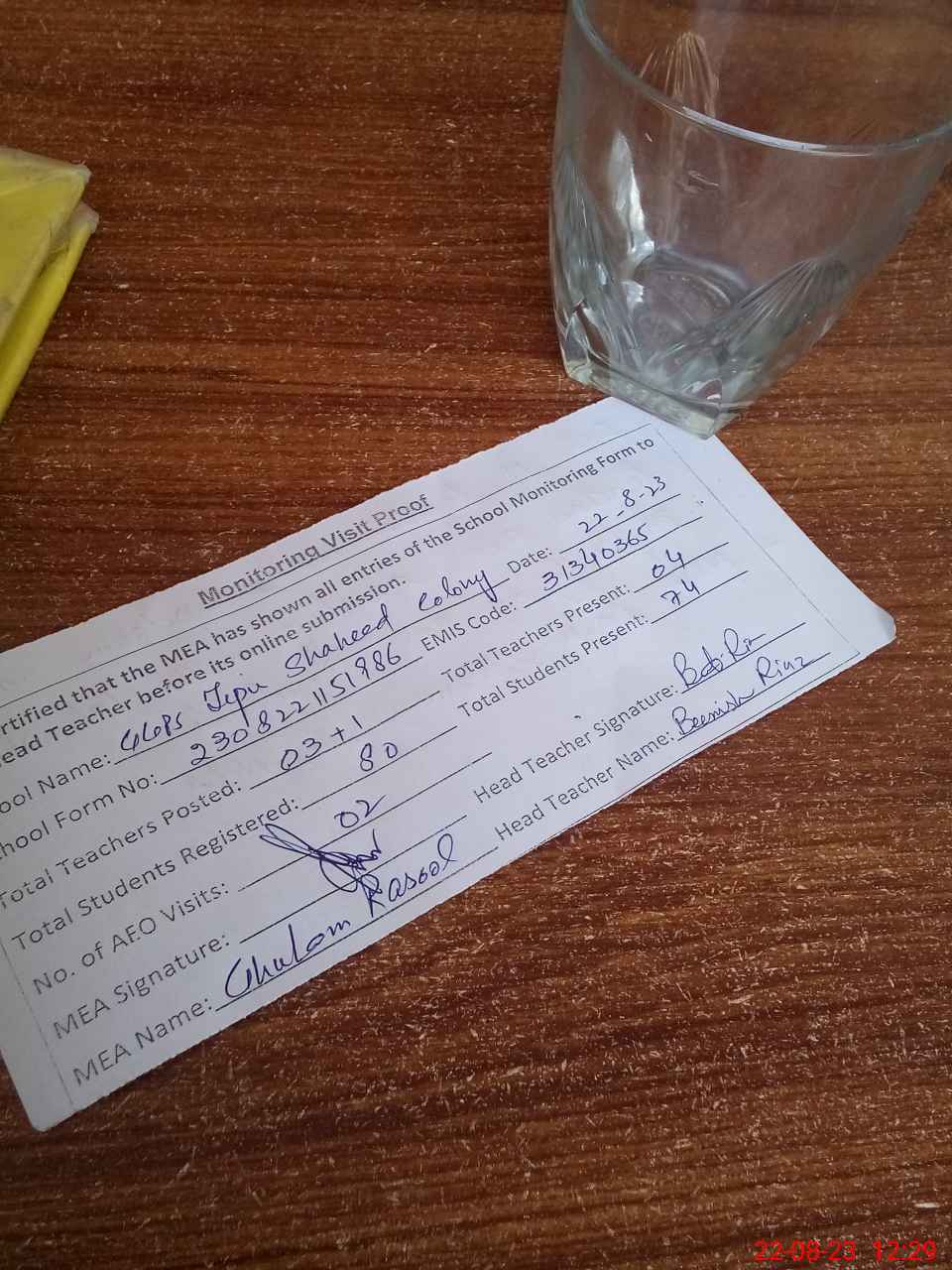 | EMIS Code: 31340365 | Name of School: GGPS TIPU SHAHEED COLONY | |||
