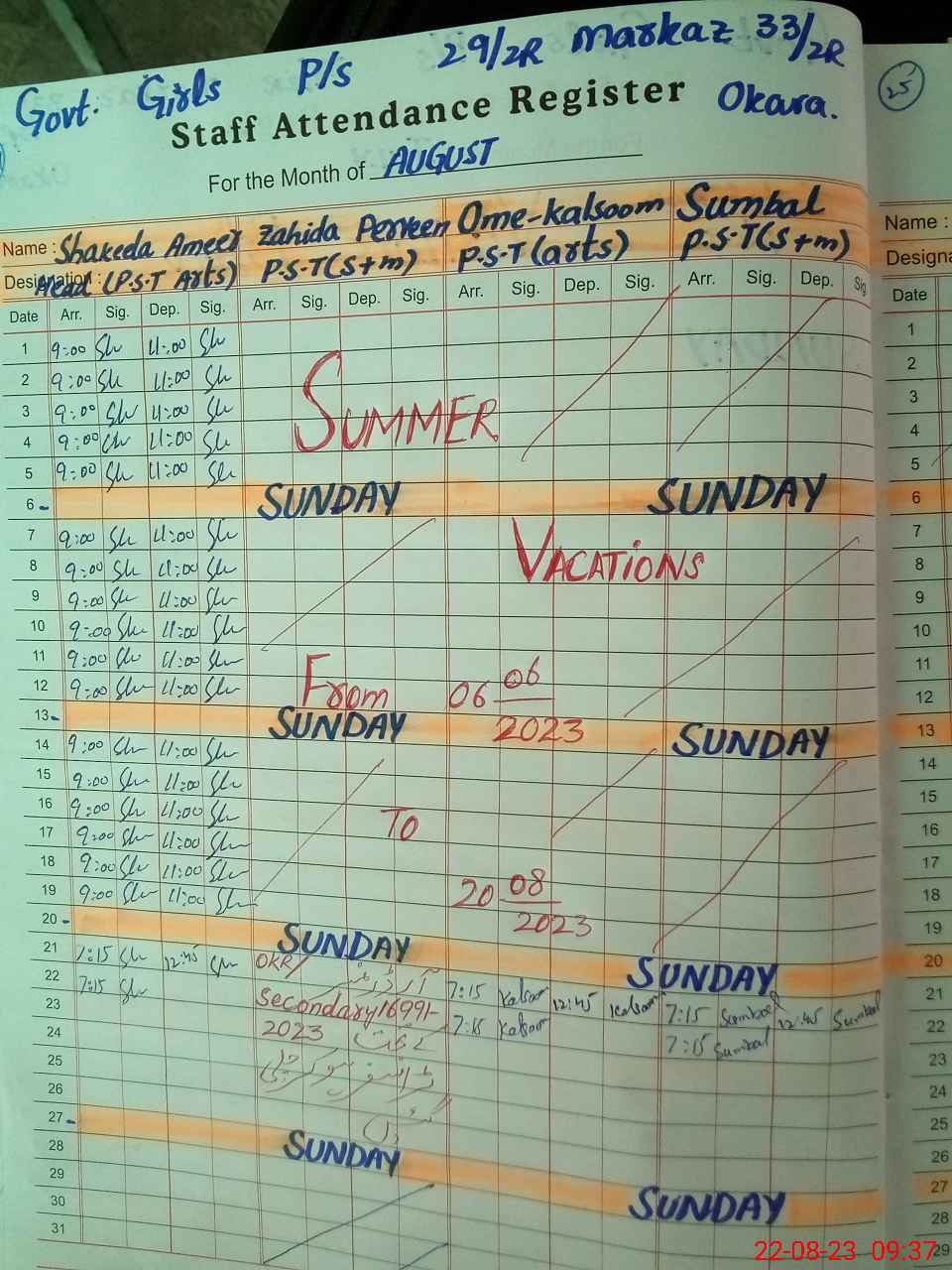 | Name: SH**** AM**** Designation: (School Headmaster's/Headmistress's) PST Phone/Cell Number: 03**** |