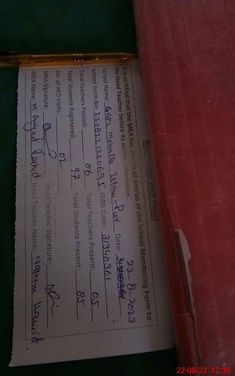 | EMIS Code: 31340361 | Name of School: GGPS MOHALLA ISLAM PURA | |||