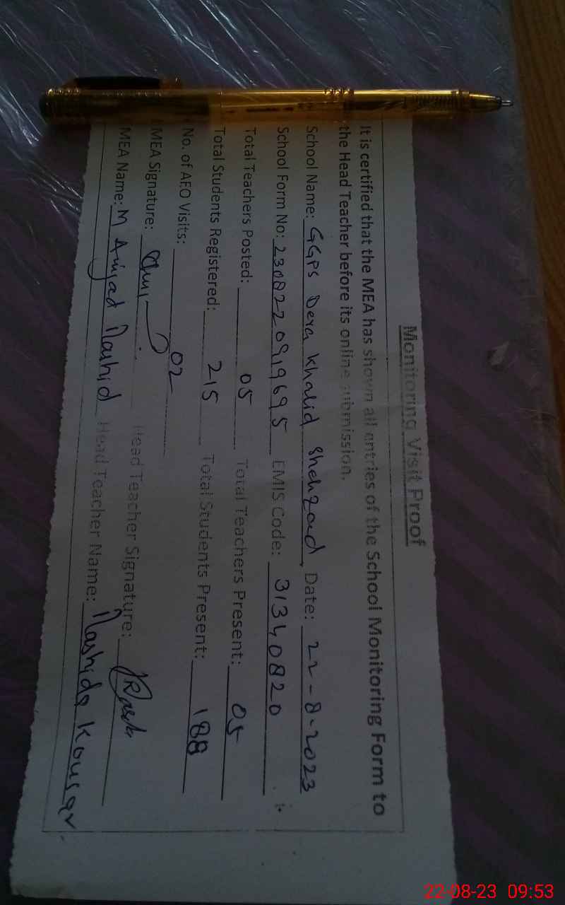 | EMIS Code: 31340820 | Name of School: GGPS DERA KHALID SHAHZAD | |||