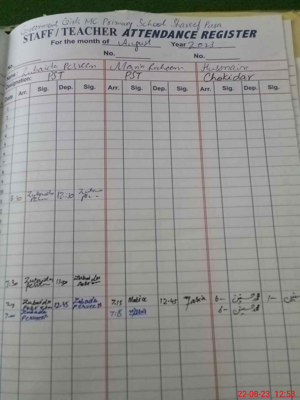| Name: Tu**** Ka**** Designation: (School Headmaster's/Headmistress's) PST Phone/Cell Number: 03**** |