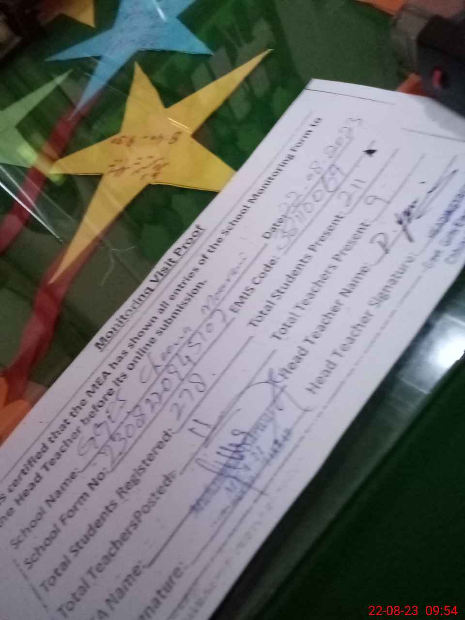 | Attendance Register | Head Teacher | MEA with School | Visit Proof |