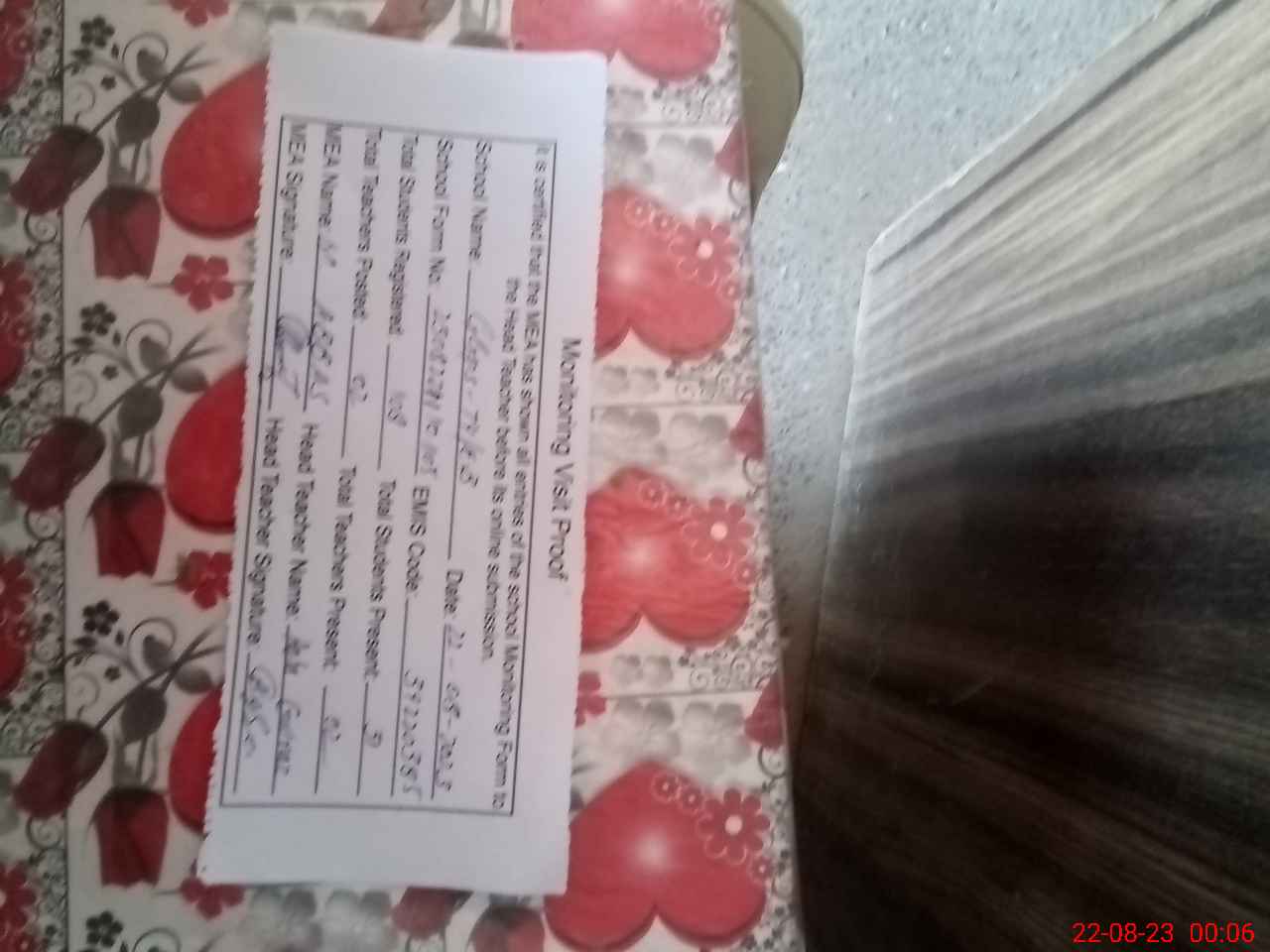 | Attendance Register | Head Teacher | MEA with School | Visit Proof |
