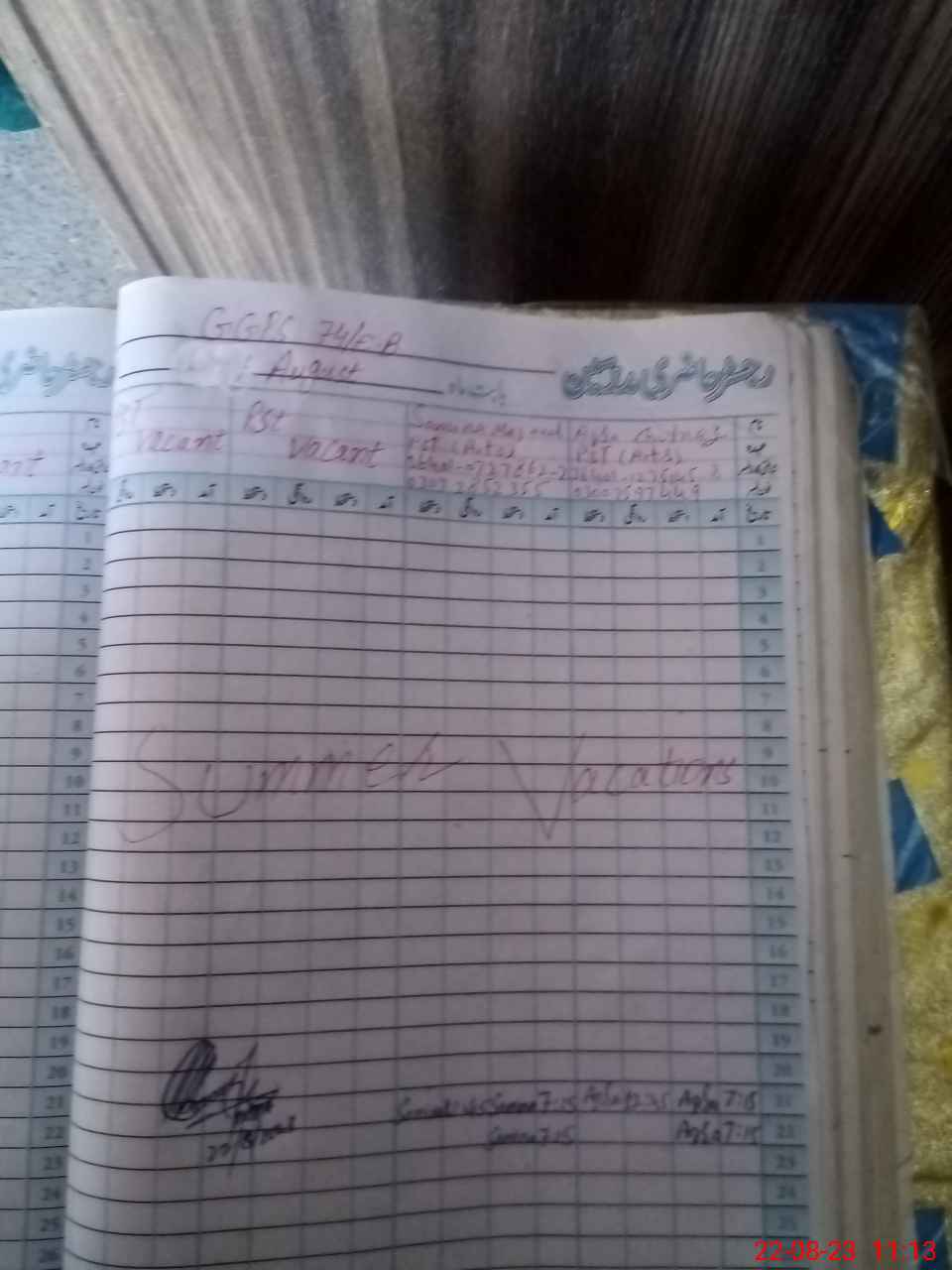 | Name: AQ**** GU**** Designation: (School Headmaster's/Headmistress's) PST Phone/Cell Number: 03**** |