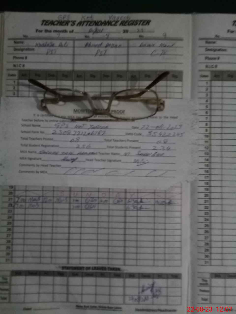 | Attendance Register | Head Teacher | MEA with School | Visit Proof |