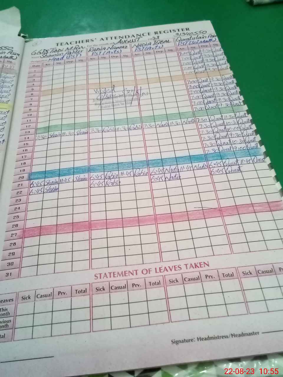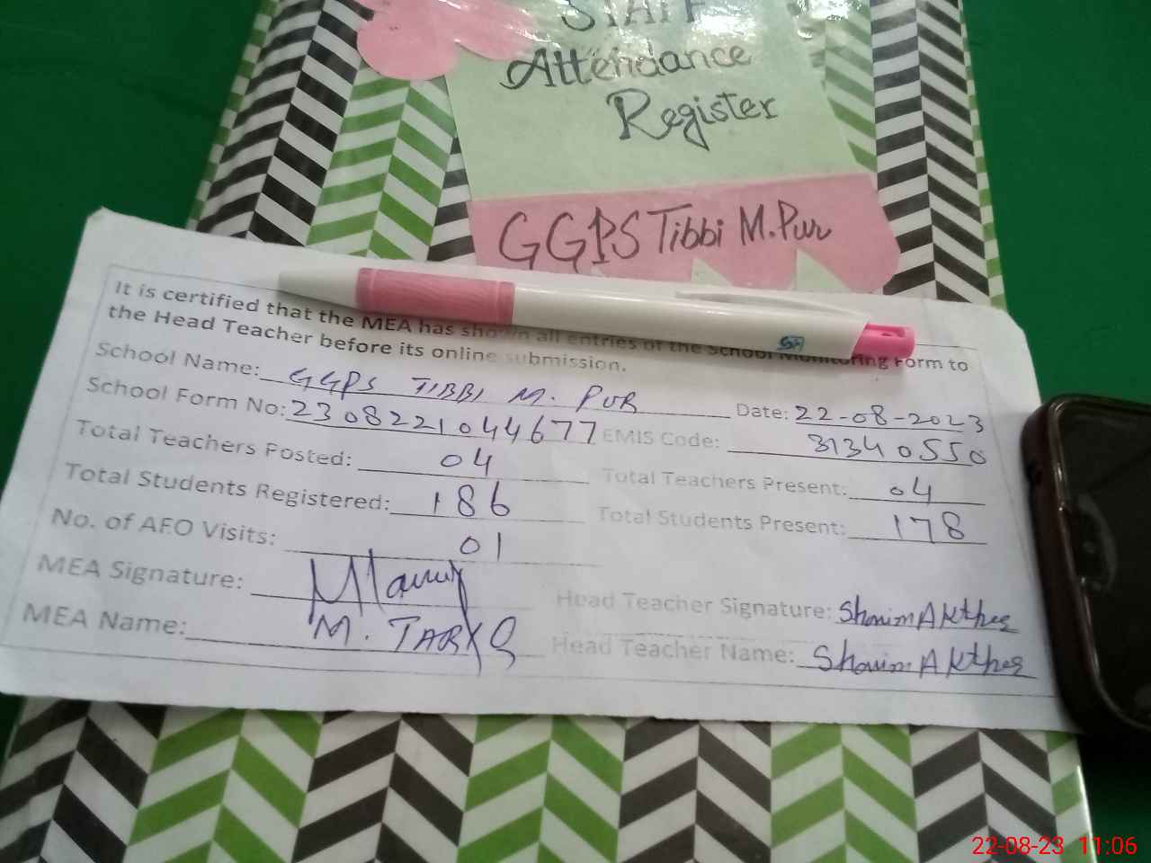 | Attendance Register | Head Teacher | MEA with School | Visit Proof |