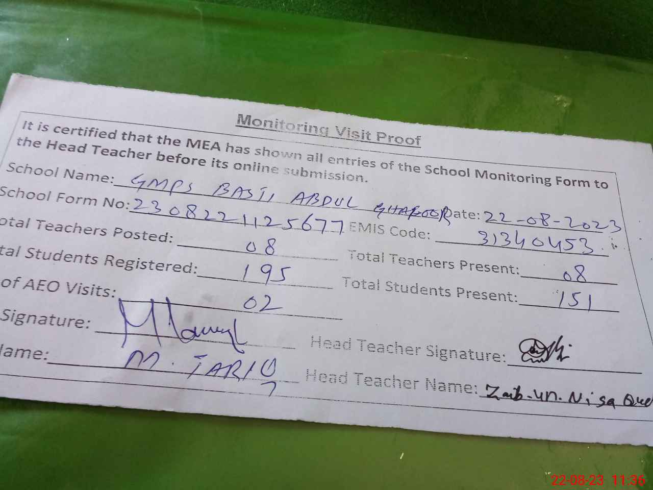 | EMIS Code: 31340453 | Name of School: GMPS BASTI ABDUL GHAFOOR | |||