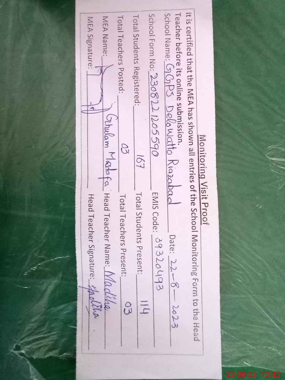 | EMIS Code: 39320493 | Name of School: GGPS DELO WATTO (RIAZ ABAD) | |||