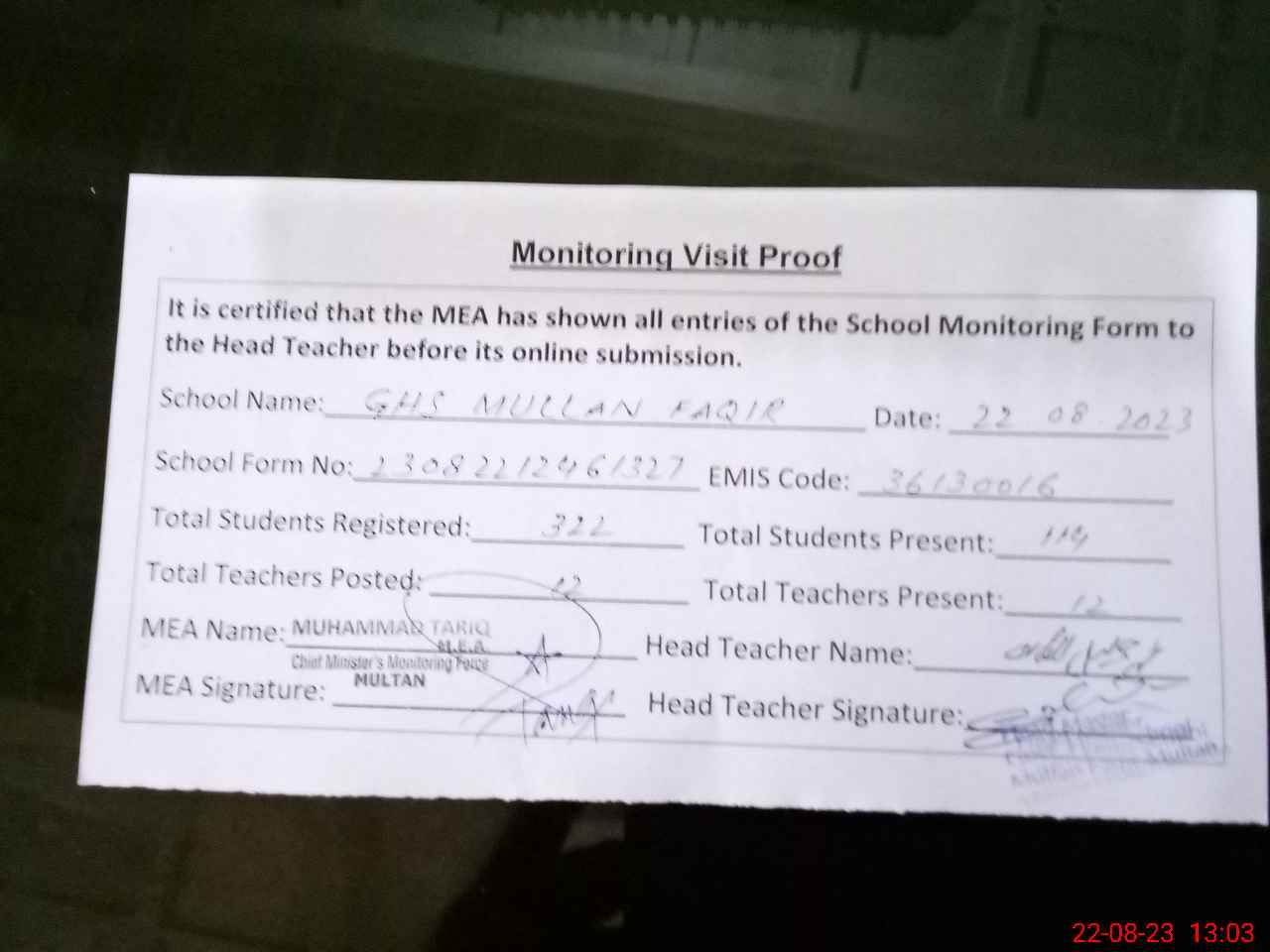 | EMIS Code: 36130016 | Name of School: GHS MULLAN FAQIR BUDHLA MULTAN | |||
