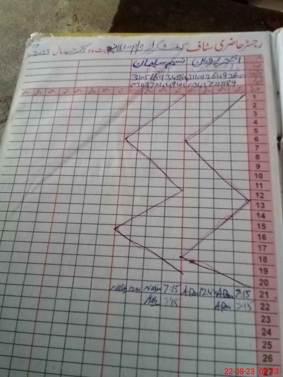 | CNIC | Full Name | Designation | R/C | Absence during last cal. month |