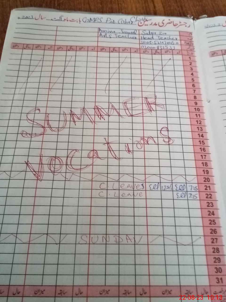 | Name: Si**** Zi**** Designation: (School Headmaster's/Headmistress's) ESE Arts Phone/Cell Number: 03**** |