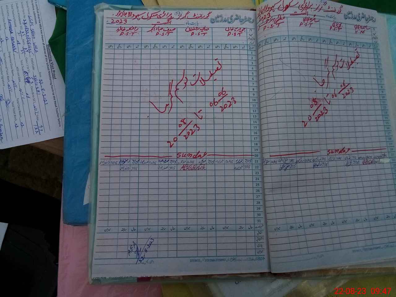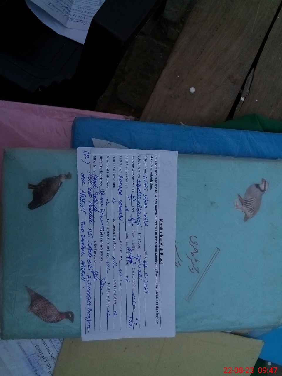 | Attendance Register | Head Teacher | MEA with School | Visit Proof |