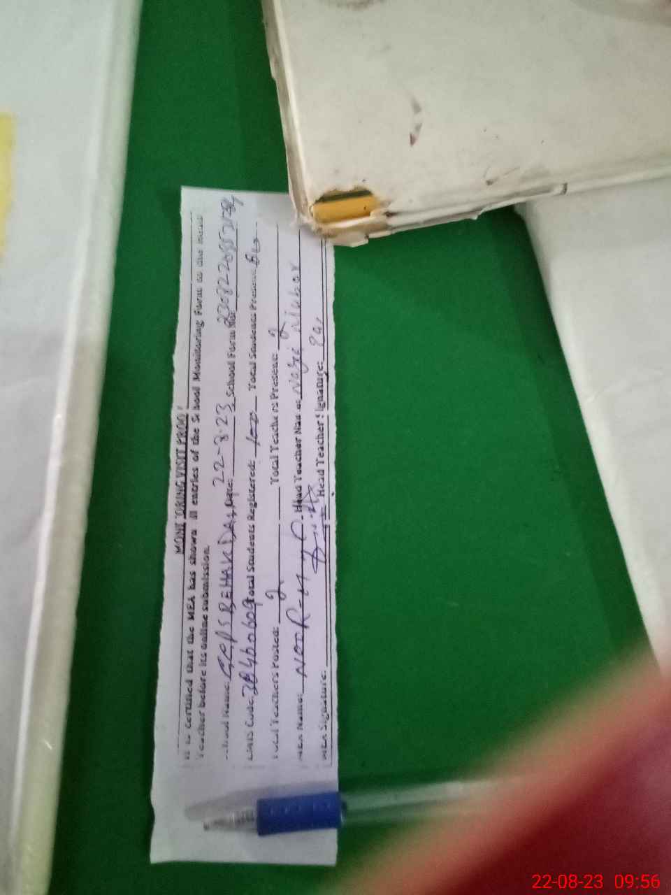 | Attendance Register | Head Teacher | MEA with School | Visit Proof |