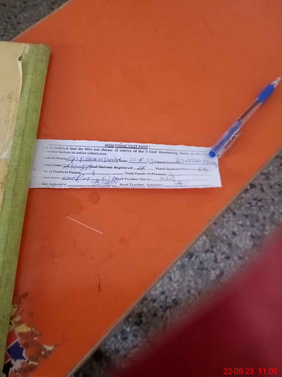 | Attendance Register | Head Teacher | MEA with School | Visit Proof |