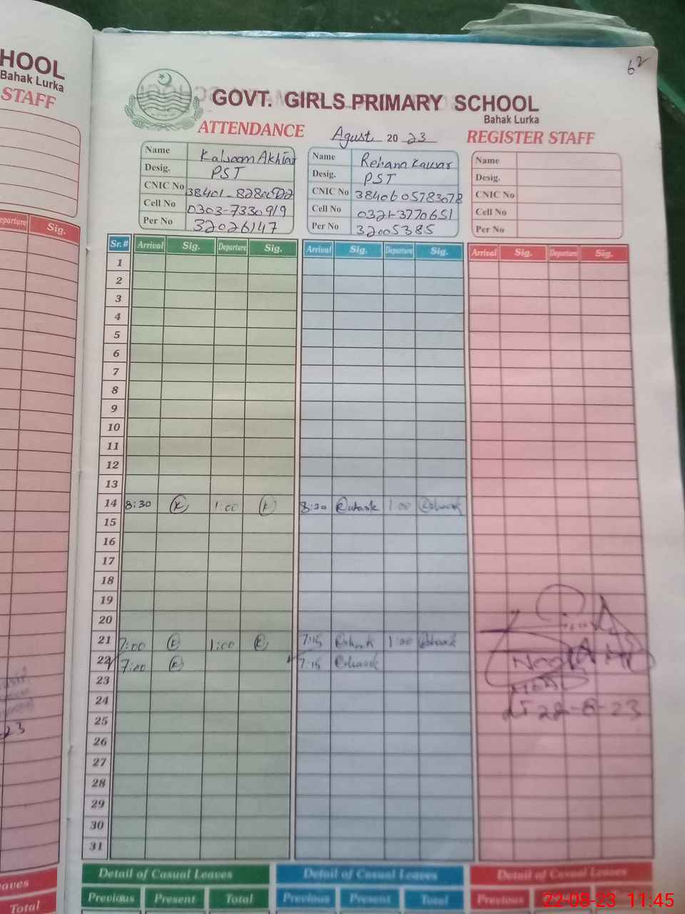 | Name: KA**** AK**** Designation: (School Headmaster's/Headmistress's) PST Phone/Cell Number: 03**** |