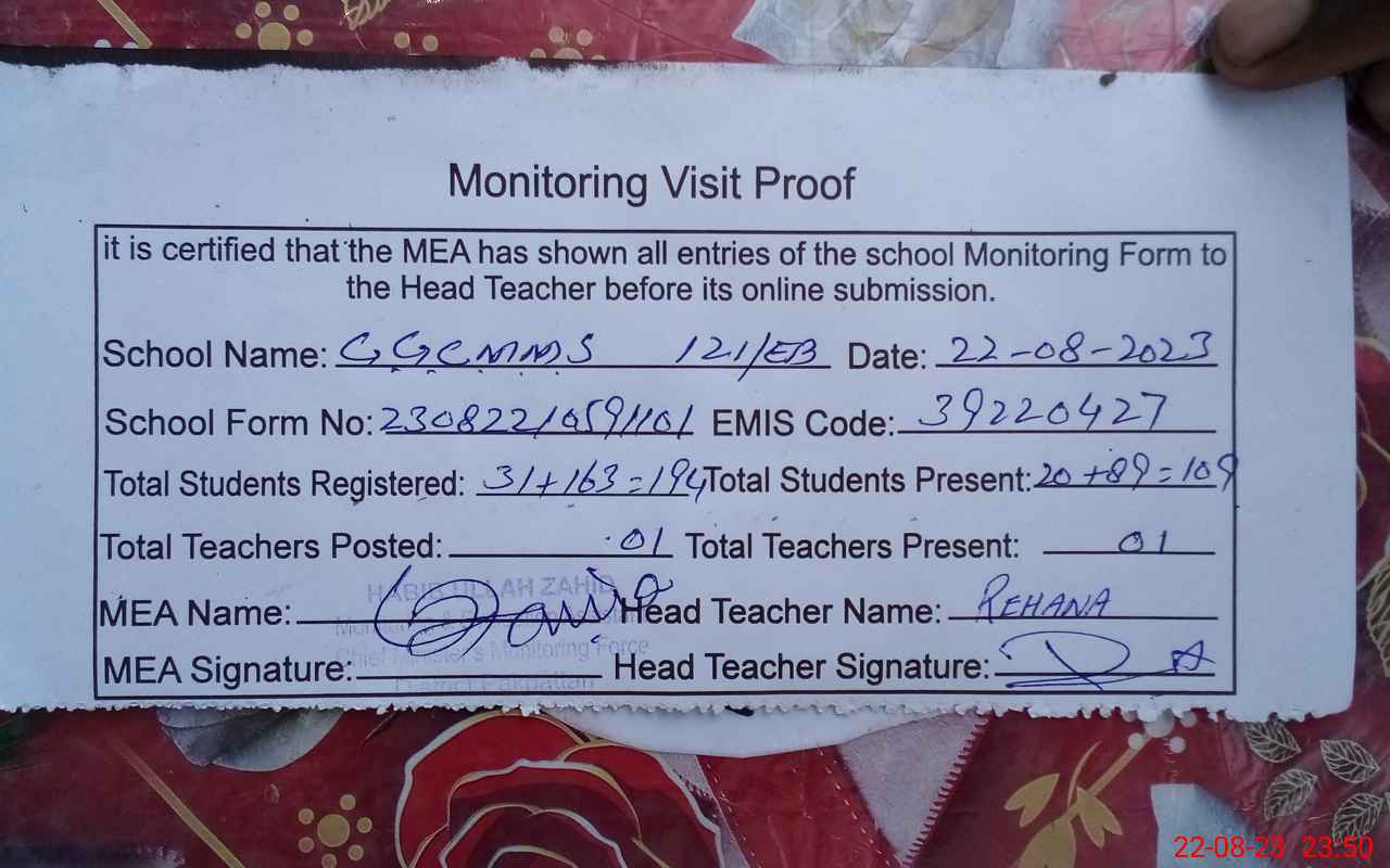 | Attendance Register | Head Teacher | MEA with School | Visit Proof |