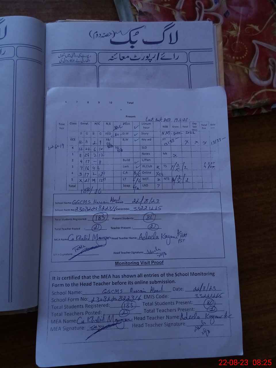 | EMIS Code: 33221265 | Name of School: GGCMS HUSSAIN ABAD | |||