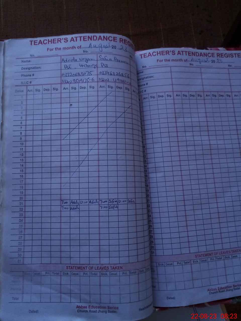 | Name: AD**** KA**** Designation: (School Headmaster's/Headmistress's) PST Phone/Cell Number: 03**** |