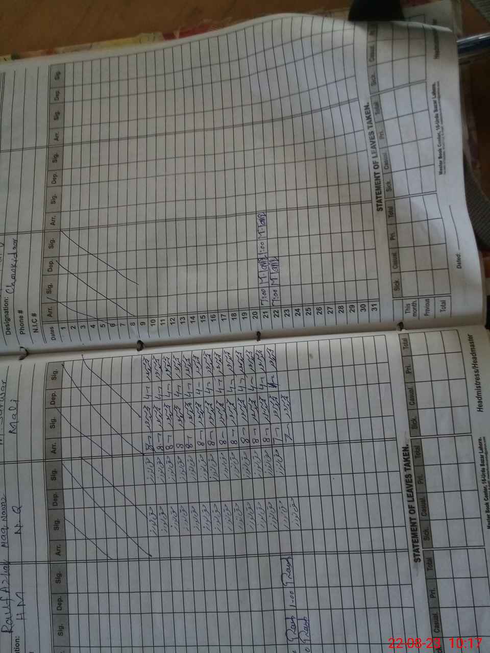 | CNIC | Full Name | Designation | R/C | Absence During Last Calender Month |