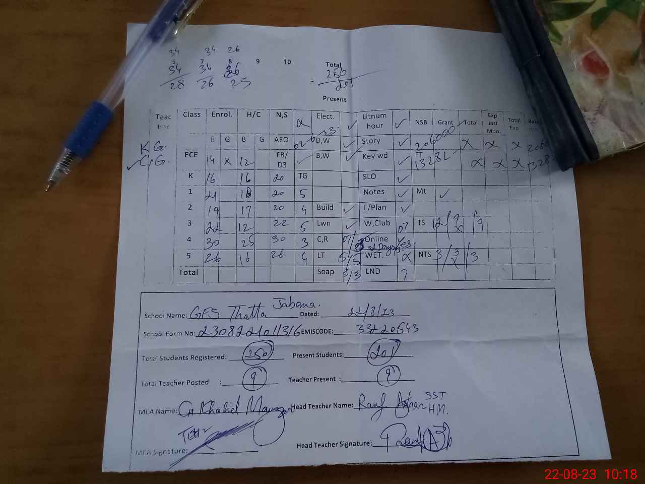 | Attendance Register | Head Teacher | MEA with School | Visit Proof |