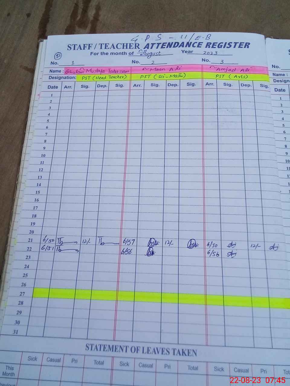 | Name: SH**** FA**** Designation: (School Headmaster's/Headmistress's) PST Phone/Cell Number: 03**** |