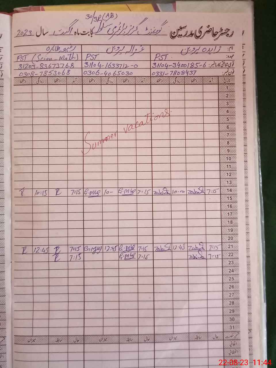 | Name: Ra**** Ta**** Designation: (School Headmaster's/Headmistress's) PST Phone/Cell Number: 03**** |