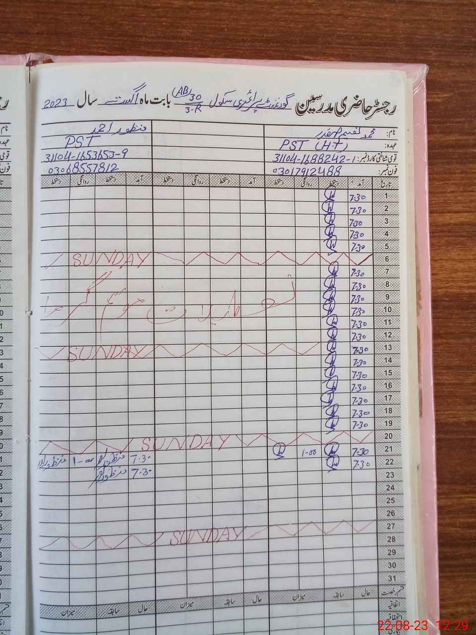 | Name: MU**** NA**** Sa**** Designation: (School Headmaster's/Headmistress's) PST Phone/Cell Number: 03**** |