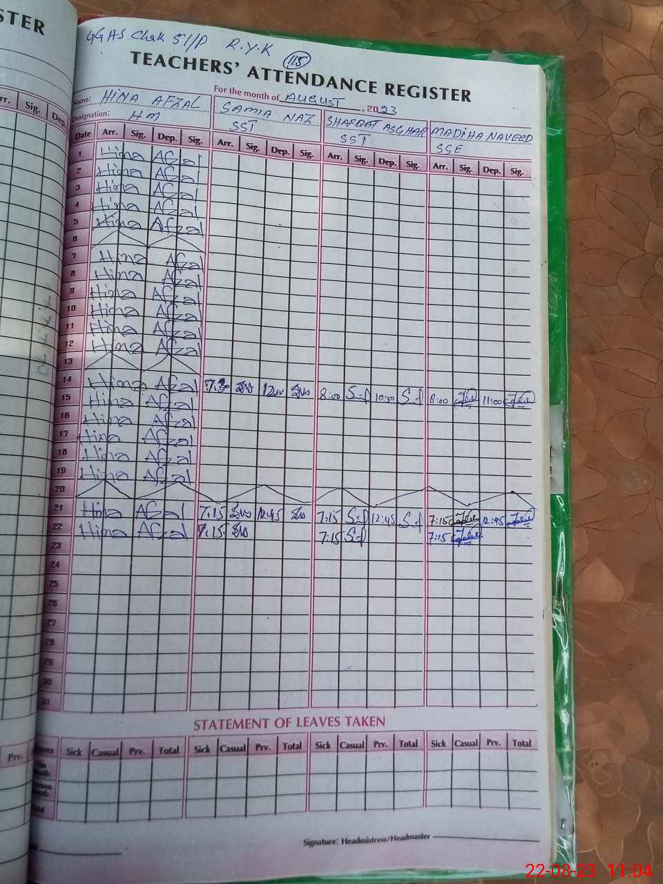 | Name: Mu**** Ya**** Designation: (School Headmaster's/Headmistress's) Head Mistress Phone/Cell Number: 03**** |