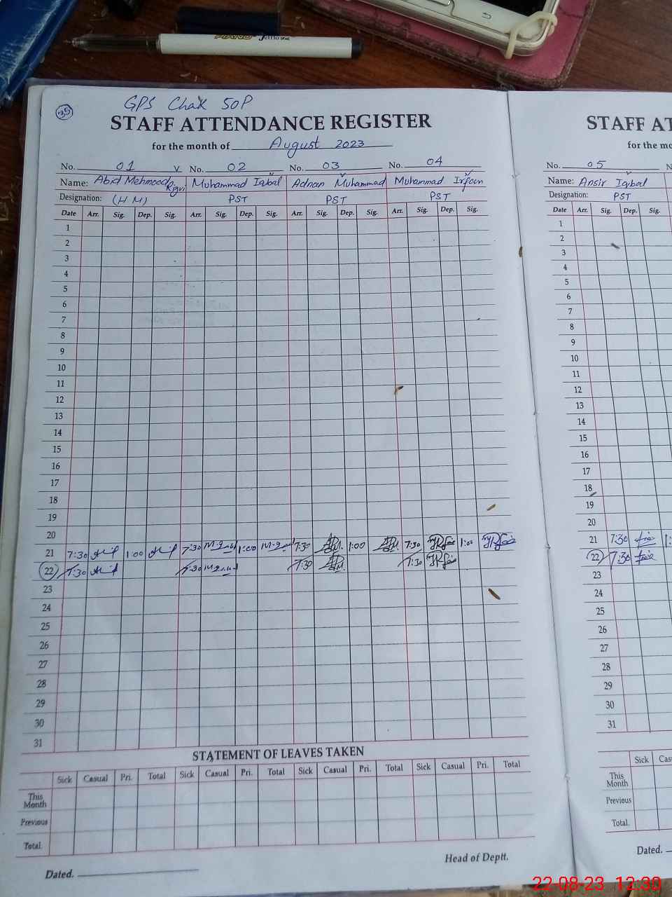 | CNIC | Full Name | Designation | R/C | Absence During Last Calender Month |