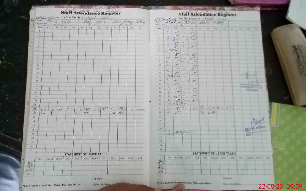 | Name: AB**** RA**** Designation: (School Headmaster's/Headmistress's) HEADMASTER Phone/Cell Number: 03**** |