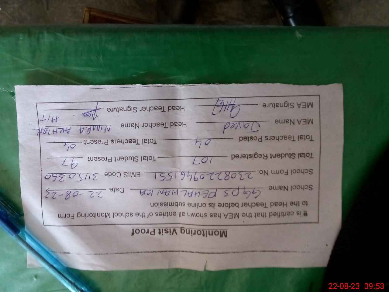 | EMIS Code: 31150360 | Name of School: GGPS PAHALWAN KA | |||