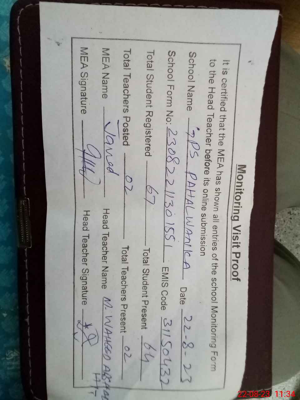 | EMIS Code: 31150432 | Name of School: GPS PAHLWANKA | |||